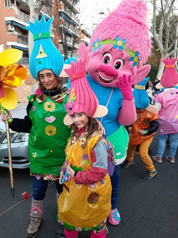 Después del éxito del pasado año 2019, en el que Villa Rosa participó en la Cabalgata con una comparsa compuesta por más de sesenta personas entre niños y adultos, este año abrimos la participación a la AMPA del CEIP Ramón Pérez de Ayala, estrecho colaborador de siempre con nosotros, que se unió con todo el entusiasmo e ilusión y que aportó una gran ayuda para la puesta en marcha de la comparsa «LOS TROLLS».