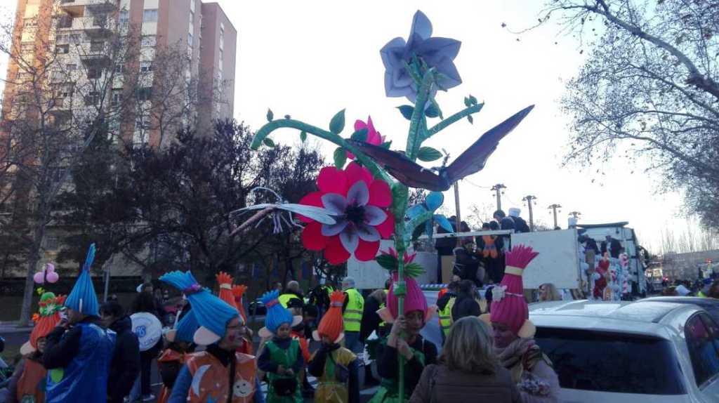 Nuestro grupo, según muchas opiniones, resultó el más alegre y colorido de todos los que desfilaron, aunque pequemos de inmodestia. Sorprendía ver a tantísimas personas llenas de color, luz y alegría, desfilar con orden y sin ningún problema, teniendo en cuenta que muchos eran niños. Hay que felicitar también al gran equipo de seguridad, que veló en todo momento para que no se produjera ningún incidente durante el largo recorrido de la cabalgata.