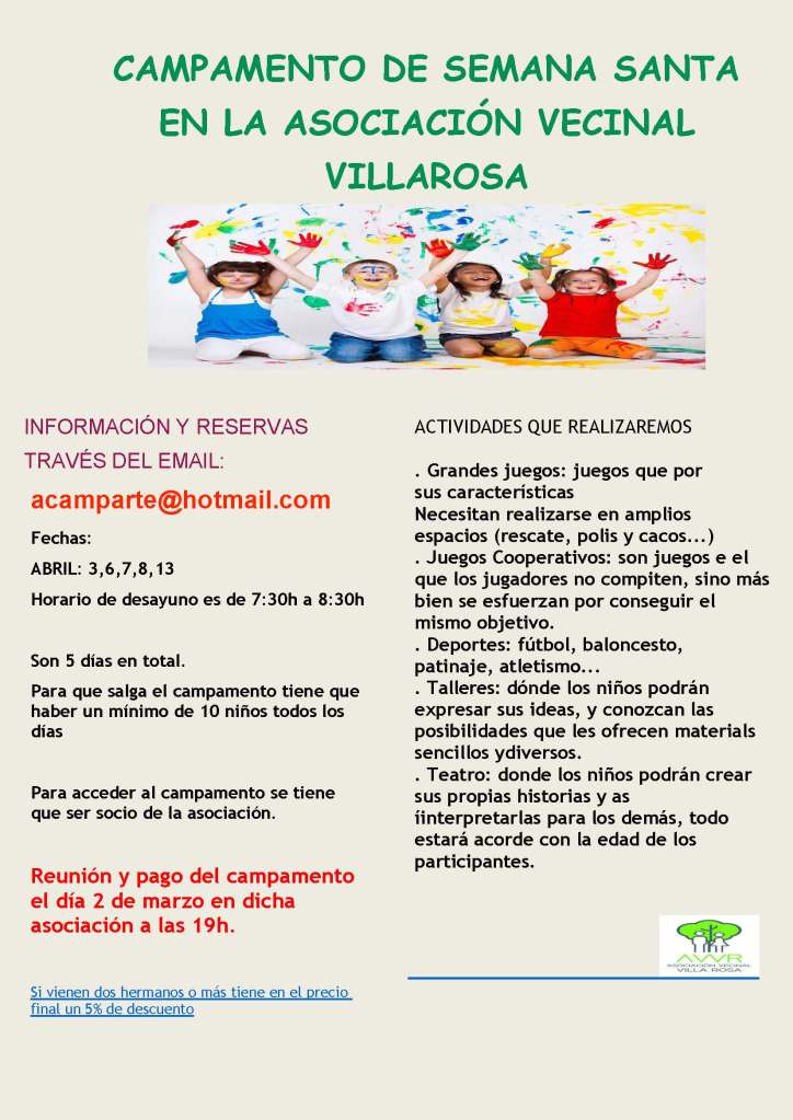 Habrá una reunión informativa y pago del campamento el día 2 de marzo en nuestras instalaciones (Asociación Vecinal Villa Rosa. C/El Provencio, 37) a las 19:00 horas.