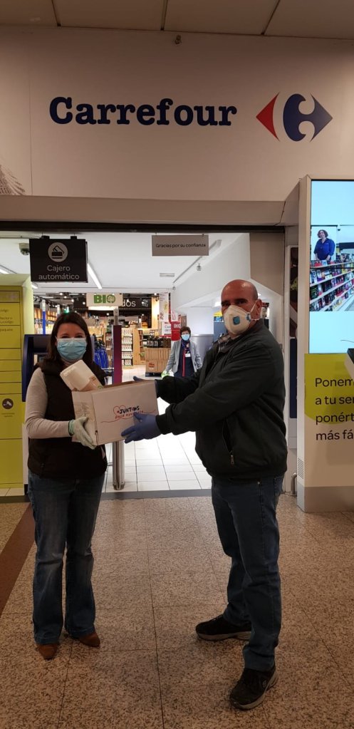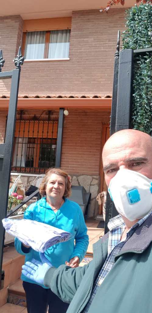 Tenemos que dar las gracias a David, gran persona y organizador de todo este tinglado, siempre inquieto y con buen corazón, que se puso en contacto con la Junta Municipal de Hortaleza y nos dio las autorizaciones para transitar libremente por el distrito para repartir mascarillas o recoger telas para su confección.