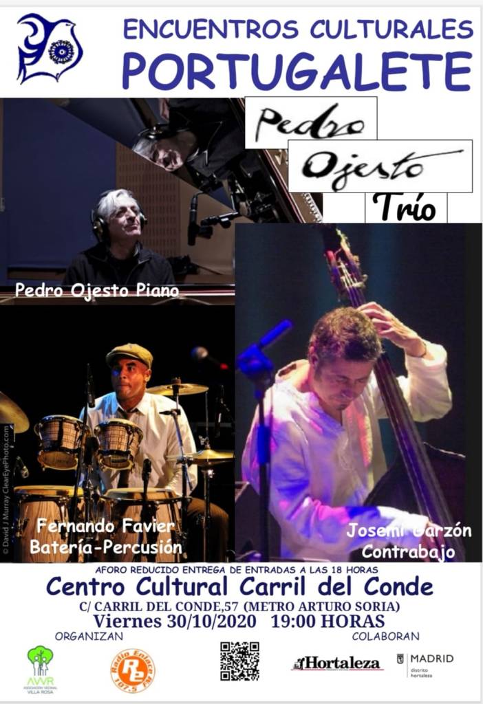 En el primer concierto podrá disfrutarse del Pedro Ojesto Trío, con Pedro Ojesto al piano, Fernando Favier a la batería y la percusión y Josemi Garzón al contrabajo.. Como ya sabéis, la entrada es gratuita y hay que recogerla a partir de las 18 horas, en el propio Centro Carril del Conde. El aforo estará limitado al 40 por ciento, si no cambia la norma debido a cómo evolucione el estado de la pandemia en nuestra ciudad.
