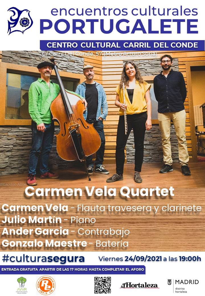 Recordaros qué volvemos después del verano con el mejor jazz a cargo de la flautista, clarinetista y compositora Carmen Vela que nos presenta su último trabajo «De Viaje».