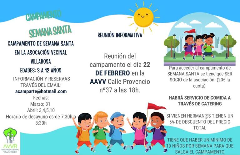 De nuevo celebramos el Campamento de Semana Santa en Villa Rosa para niñas y niños de entre 4 y 12 años.