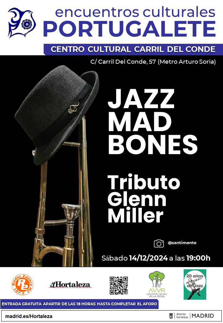 El 14 de febrero del 2004 comenzábamos esta aventura de traer el mejor Jazz al distrito de Hortaleza, en estos 20 años hemos intentado recoger todas las posibilidades de estilos dentro del universo del jazz, creo que honestamente lo hemos conseguido siendo actualmente un referente entre los músicos y aficionados de este tipo de música, todo comenzó con un concierto de Norman Hogue trombonista Norteamericano que como él decía con pasaporte de Lavapiés, y para este concierto también como homenaje a Norman traemos una banda de la que él formó parte JAZZ MAD BONE.SÁBADO 14 DE DICIEMBRE A LAS 19 HORAS ENTRADAS HASTA COMPLETAR EL AFORO DESDE LAS 18 HORAS EN EL MISMO CENTRO.