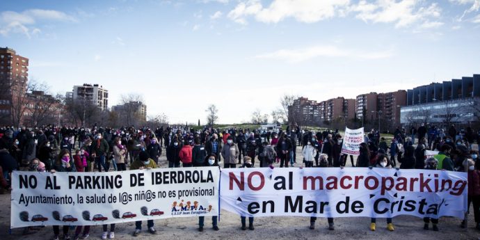 Cientos de personas se manifiestan en Hortaleza contra el proyecto de aparcamiento disuasorio en Mar de Cristal y reclaman el desmantelamiento del parking de Iberdrola construido en una parcela municipal junto al colegio público Juan …