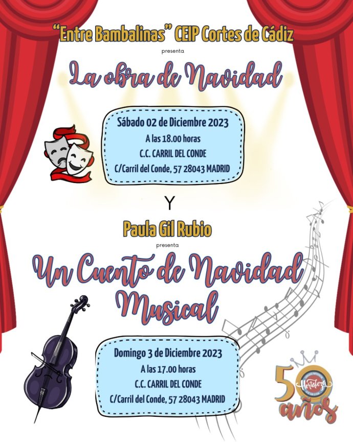 Por Hortaleza Periódico Vecinal El mes de diciembre, se llena de actividades en apoyo de la Cabalgata Participativa de Hortaleza, comenzando con las actuaciones infantiles en el Centro Cultural Carril del Conde, donde este año se podrá disfrutar …